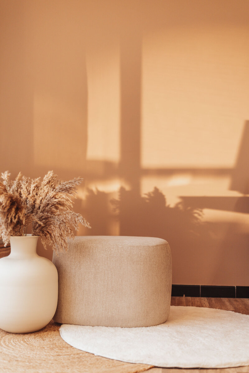 Decoratie zoals vazen, kussens, bankjes,.. mogen verplaatst worden. Het enige dat niet verplaatst mag worden zijn de zetel en het bed.